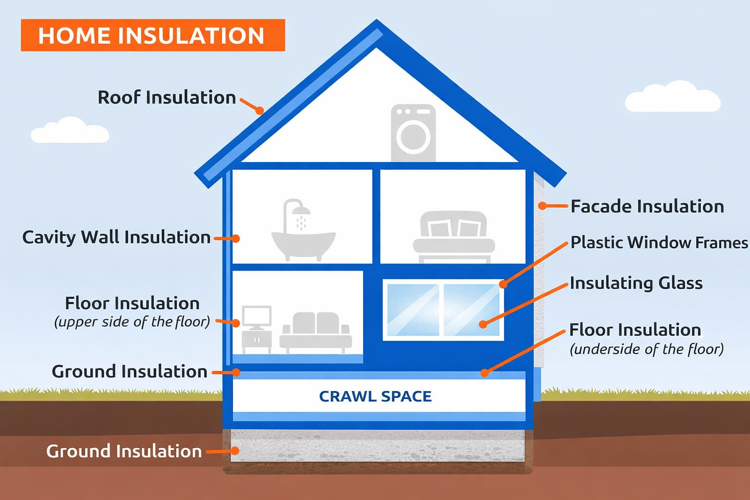 In England, the most important insulation measures are: